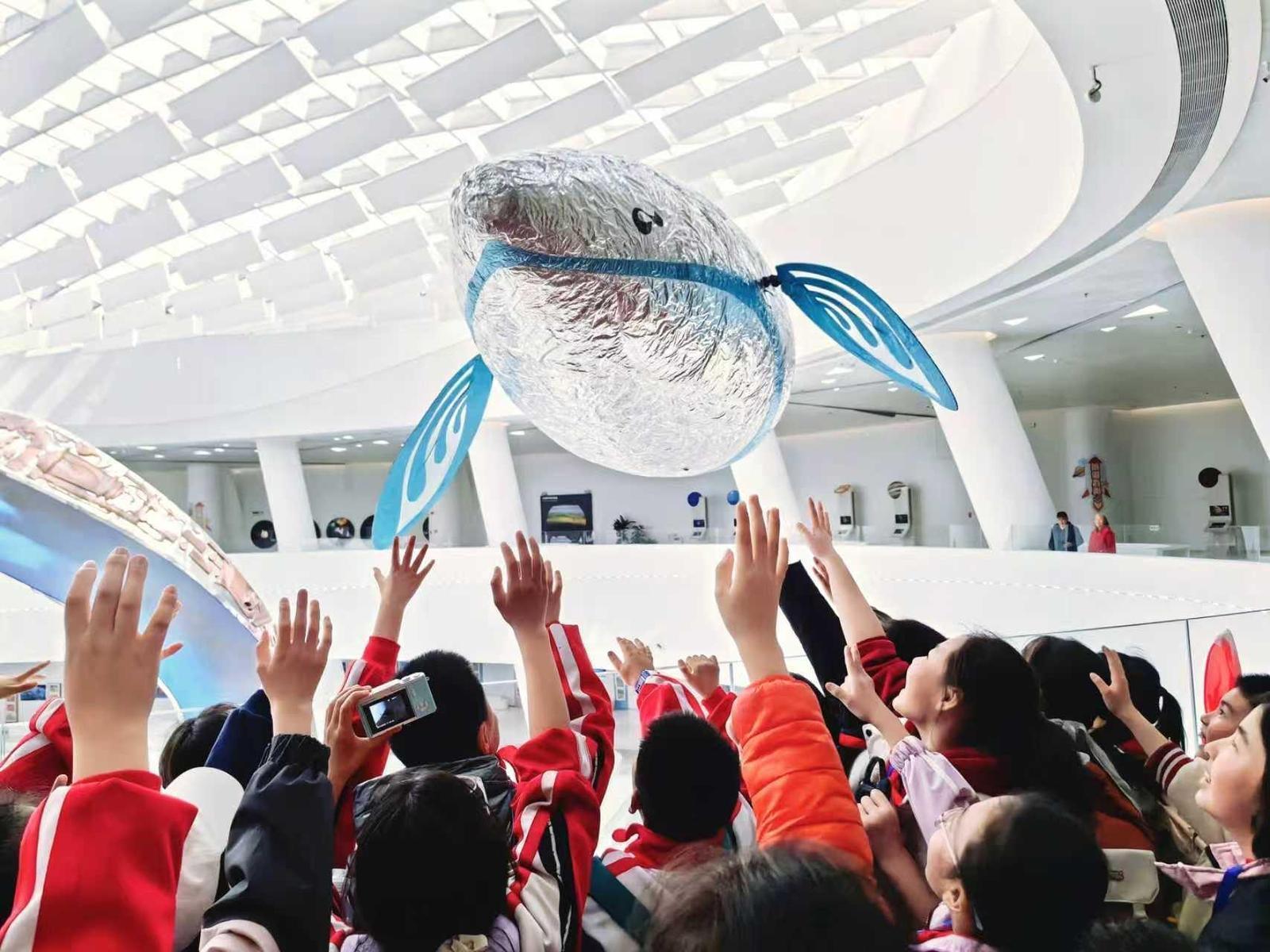 值得一提的是,馆内定时上演机械仿生飞鱼表演、无人机宇航员空中飞行表演,呈现科技与建筑美学相融合的视觉盛宴。