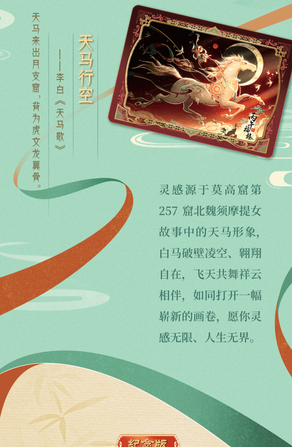 而这背后,是一代年轻人用自己的方式深入了解和传承传统文化。第三方数据机构报告显示,2025年总台春晚年轻用户参与度创新高,90后、00后占比66%,越来越多的年轻人成为主力观众。据报道,2026年,总台春晚首次向B站UP主敞开策划讨论的大门,邀请平均年龄不超过30岁的内容创作者参与共创。而“骐骥驰骋典藏卡”的创作团队,是曾推出《卡游三国》《长安三万里》《哪吒2》等卡牌产品的“Z世代”年轻画师们,他们的“创作动力源于不想让四大名著仅止于书本,不想让敦煌只在博物馆里,不想让昭陵六骏只刻于石上”。于是,今年这群年轻人把“春风得意马蹄疾”凝于卡面,把敦煌壁画白马带出莫高窟——就是为了让千年之美,能被握在手心。