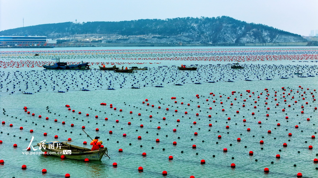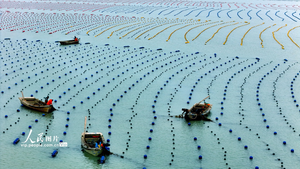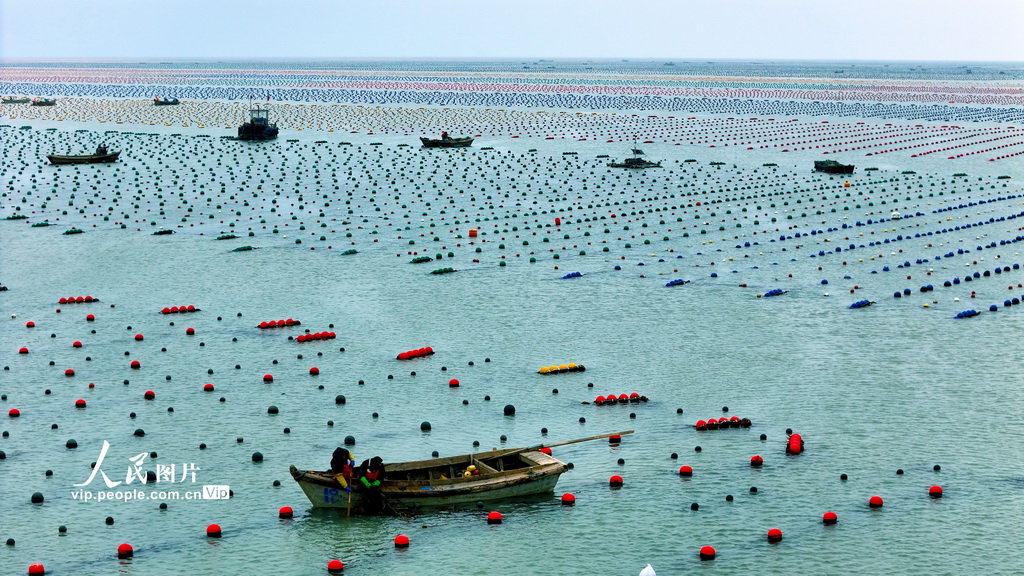 山东省荣成市是我国重要的海带养殖区,雨水节气一过,海上生产呈现一派繁忙的劳动景象,养殖管理拉开了海上“春耕”生产序幕。杨志礼摄(人民图片网)