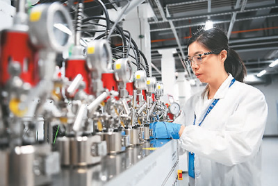 近年来,陕西省榆林市加强科技创新和技术攻关,推进能源绿色低碳转型,加快建设新型能源体系,越来越多的高端化、多元化、低碳化场景贯穿能源研发、生产、运输、应用等诸多环节。图为榆林中科洁净能源创新研究院研究人员正在工作。
