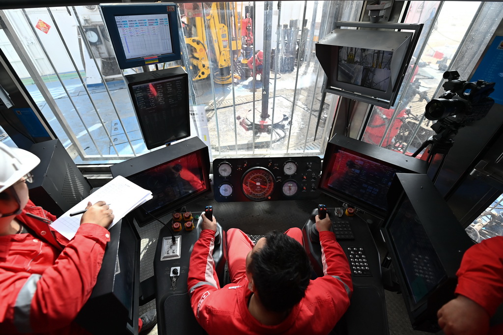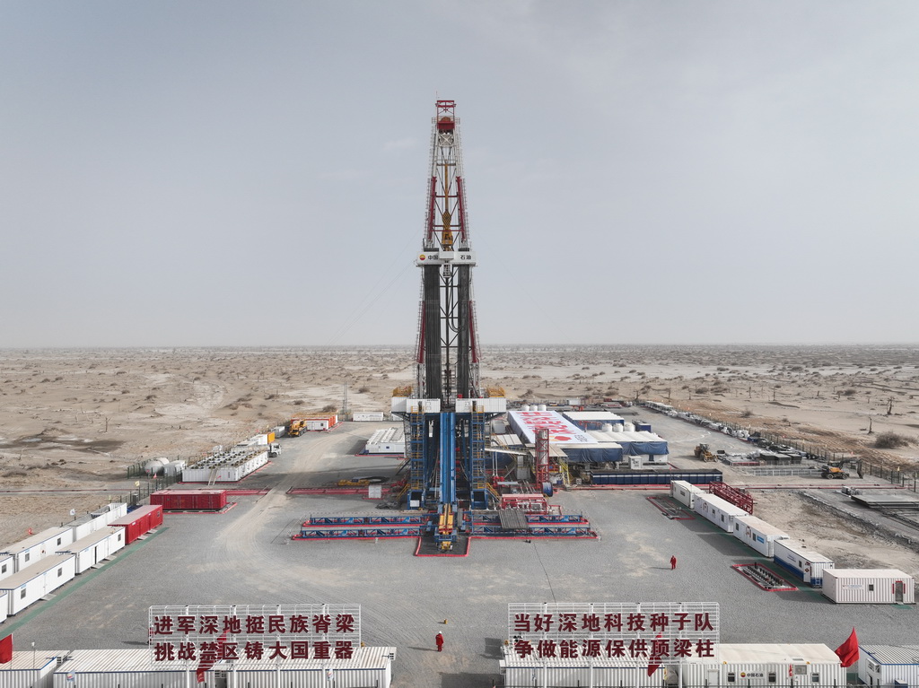 万米“冲刺”成功后,深地塔科1井肩负科学探索和预探发现两大使命,仍在向着目标深度全速钻进。新华社记者 李响 摄