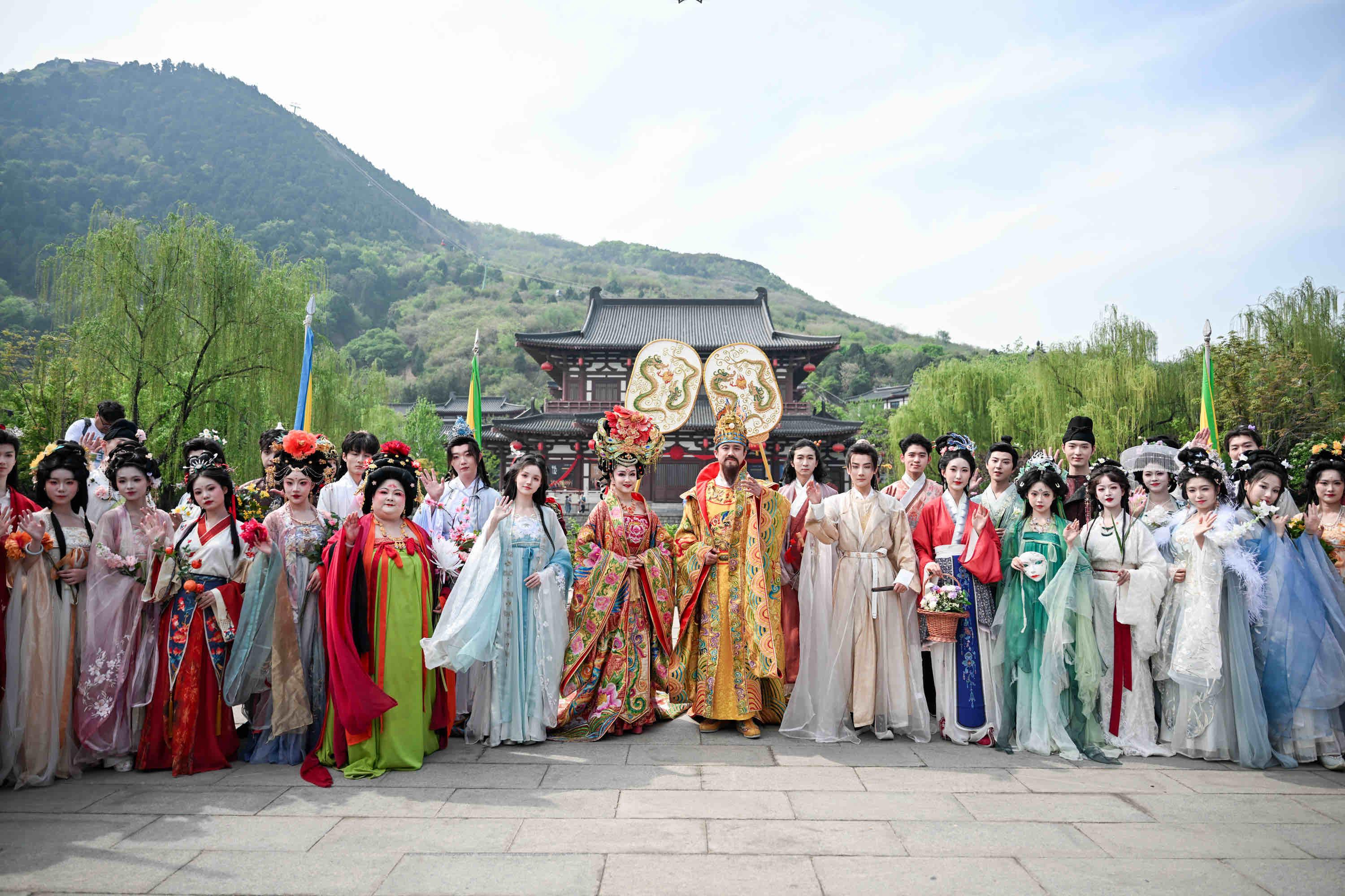 上巳时节春意浓,华清宫内花争艳。宫门开处宣花神,裙幄华服画中游……4月11日上午10时,伴随着“皇帝贵妃”在望京门外,以大唐之礼迎接诸多汉服爱好者和游客,“春日游,裙幄华服满华清”第二届上巳花神节正式在西安市临潼区华清宫内拉开帷幕。