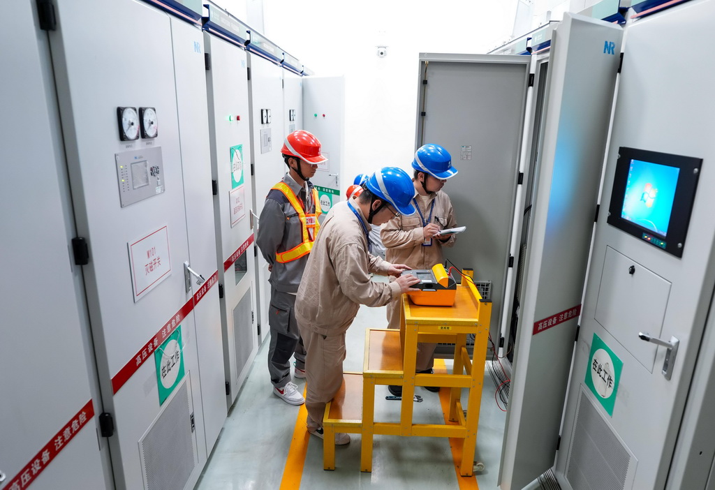 近日,昌吉-古泉±1100千伏特高压直流输电线路的受端站——安徽宣城古泉换流站调相机设备迎来为期20天的“体检”。调相机被誉为电网的“稳压器”,此次开展各类检修、试验、消缺项目可有效解决新能源大规模接入电网带来的电压稳定问题,提升输电安全可靠性,为长三角地区经济发展提供有力能源支撑。
