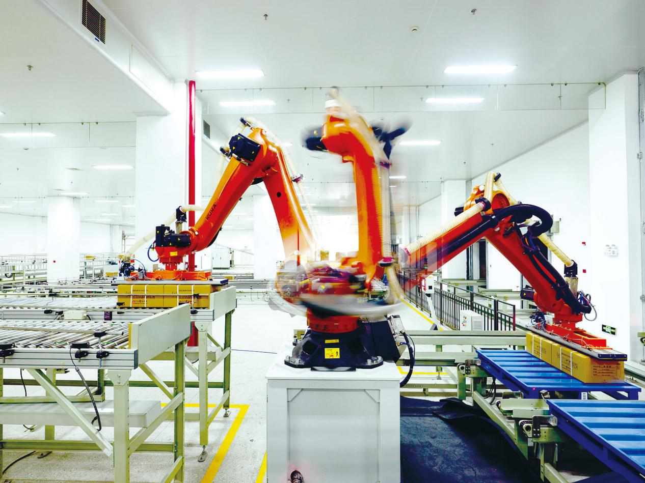 一个个机器人挥舞翻转着“手臂”,装箱、打包、搬运,整个过程一气呵成;专用高速相机对准刚灌装好的口服液拍照检查,分秒不停;“全能型中药智能检测机器人Alpha Test 1”项目孵化落地……