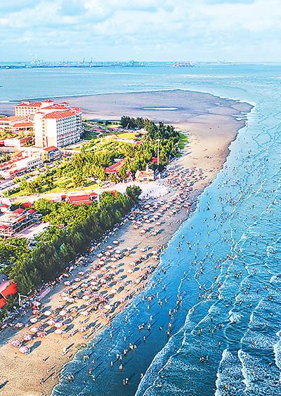 广西防城港市白浪滩上,游人如织。 |