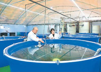 在河北唐山海港经济开发区尚游智慧渔业产业园,一进养殖车间,记者就被门口的滚筒微滤机、蛋白质分离器、生化罐等大型机械设备吸引了。“这套设备是海水养殖池的‘特殊造型’,能让养殖尾水循环起来,实现绿色生态化养殖。”产业园总经理唐金辉说。