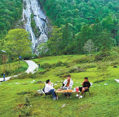村民普志荣在马鞍底乡蝴蝶谷外经营着一家乡村民宿,今年民宿房间早早就被订满。“可以观赏蝴蝶飞舞,也可以漫步溪谷与梯田,逛累了就去山野市集品尝当地有名的‘长寿宴’,还能回来试试我们自家做的特色美食。”普志荣贴心地给住店旅客规划着出行的路线。