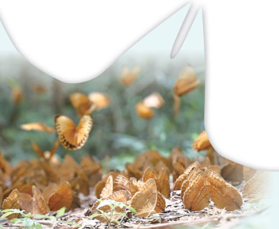 林间草丛,溪流山谷,成群蝴蝶翩跹飞舞。幽静竹林,光影斑驳,一群又一群的金黄色箭环蝶聚在林间角落。一阵风起,竹林微动,无数只箭环蝶翩然散去,宛如落英缤纷。