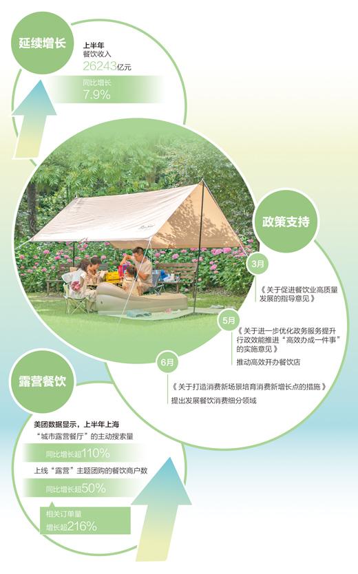 餐饮企业创新经营模式。中国饭店协会观测到,上半年,在元旦、春节、“五一”、端午等假期带动下,假日餐饮消费规模增长较快,特别是在假期首日达到峰值,餐饮业的“假期效应”与“假期首日效应”进一步凸显。年轻消费群体更加注重个性化、生活仪式感和情绪价值,节日、纪念日、赛事活动成为拉动餐饮消费的增长点。餐饮企业积极挖掘消费新空间,打造露营餐饮、“摆夜市”、美食文旅等个性化消费新场景,增强消费者体验;地标美食、地标食材成为打造特色产品的有力抓手;“国潮”美食、文化主题饭店、绿色饭店、绿色餐饮等新消费模式愈发受到关注;特色小吃、具有较高性价比、自选自助大众化平价类产品受到热捧,在新增餐饮企业数量中占比高。餐饮企业积极应对市场变化,促进了餐饮消费的稳定恢复。