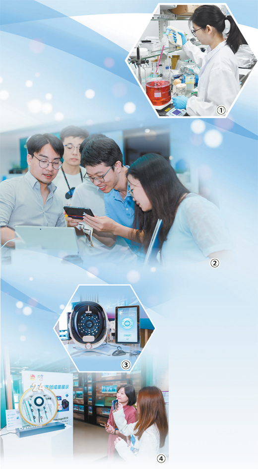 图①:香港创业团队成员在南沙粤港澳(国际)青年创新工场提供的实验室内做实验。