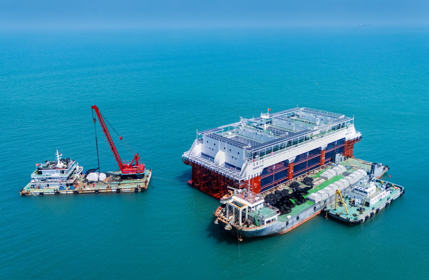 该座移动式“蓝色粮仓”顺利“到岗”,是象山藏粮于海、向“新”而行的生动实践。近年来,该县充分发挥新质生产力的引领作用,从内湾向深海迈进,建设海洋牧场,培强拉长种苗选育、深海养殖、精深加工全产业链条,提升海洋科技驱动力,实现海产品养殖的产量和质量共同提升,不断满足消费者对海洋美食的需求。胡学军摄(人民图片网)