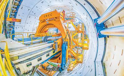 全长13.69公里的珠江口隧道是深(深圳)江(江门)铁路全线控制性工程,采用“矿山法+盾构法”组合施工。其中,“深江1号”盾构机从广东东莞向广州南沙方向掘进3.59公里,先后穿越13种地层、5种复合地质。