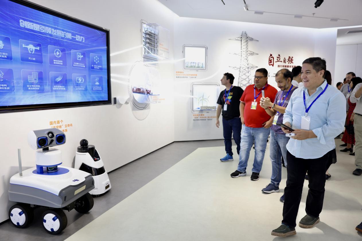 9月4日下午,参加2024“一带一路”媒体合作论坛的拉美媒体采访团来到这里,从一项项数字电网新技术、新成果中感受高质量发展的数字动能。