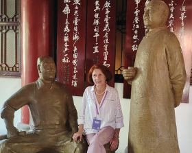 爱和中国雕塑合影的吉尔吉斯斯坦《比什凯克晚报》第一副总编辑妮娜·尼奇博洛娃说,她之前就知道中国茅台酒,并且品尝过。在他们的国家,现在学习中文的人越来越多,图书馆里也有很多中文书籍。她说,“中国语言、中国酒、中国书,都是热门。”