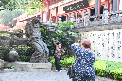 欧亚媒体考察团成员对中国的“诗仙”李白都很感兴趣(陈斌摄)