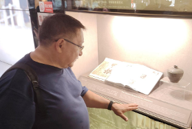 谢里克•科尔茹姆巴耶夫在阅读《申报》对茅台酒的报道(周斌摄)
