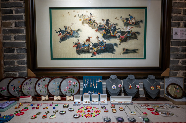 成都华珍藏羌文化博物馆内展示的织绣作品。王哲 摄