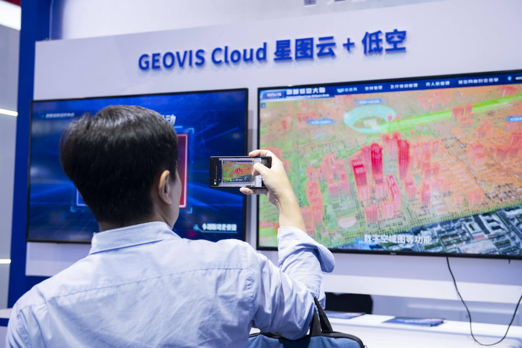 9月6日,观众在2024低空经济发展大会创新成果展区了解可用于城市空域管理的数智低空大脑产品。 新华社记者 傅天 摄