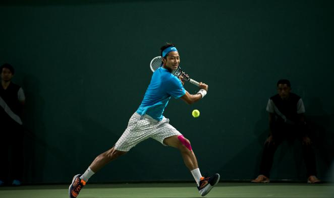 网球运动员柏衍到京山参加绿林网球英雄会表演赛