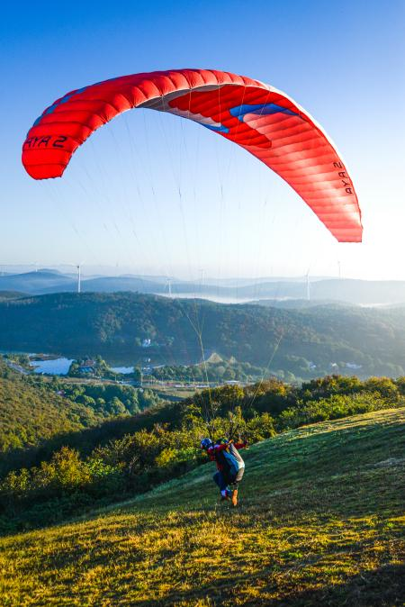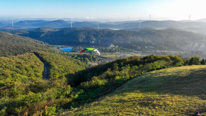 在这片巧夺天工的自然美景中,滑翔伞爱好者们可真是找到了最理想的“飞行乐园”。圣境山有着得天独厚的亚热带季风气候和天然的小盆地地形,风向稳定、风力均衡,热气流源源不断,简直是天生的飞行场地。这里一年四季都可以起飞,年均220个可飞日,无论是初学者还是飞行高手都可以尽情体验“飞翔梦”。