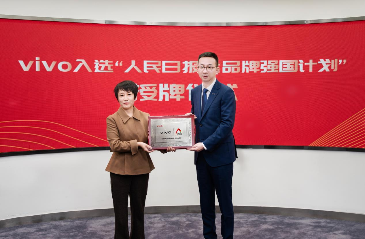 2024年11月27日,vivo入选“品牌强国计划”授牌仪式在人民日报社举行,人民日报文化传媒有限公司董事长寇非、vivo品牌副总裁贾净东出席仪式并见证授牌。贾净东还应邀参加了28日在人民日报社举办的2024中国品牌论坛,vivo入选本次论坛发布的“2024中国品牌创新案例”。