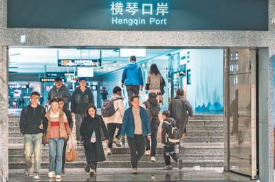 在澳门乘坐轻轨“氹仔线”,在莲花站换乘,列车刚启动,广播就开始播报:“下一站——横琴站!”两分钟后,列车便稳稳停在横琴口岸澳门口岸区……