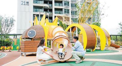 澳门新街坊是粤澳两地携手合作的首个综合民生项目,总建筑面积约62万平方米,为合作区澳门居民提供优质生活空间。图为新街坊居民陪孩子玩耍。