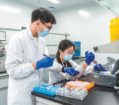 在粤澳合作中医药科技产业园,澳门青年创业企业嘉亨(珠海横琴)医药科技有限公司内,实验人员正在做实验。