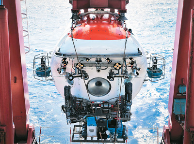 图为9月11日,“蛟龙号”载人潜水器在维嘉海山完成2024西太平洋国际航次科考最后一个潜次下潜作业。