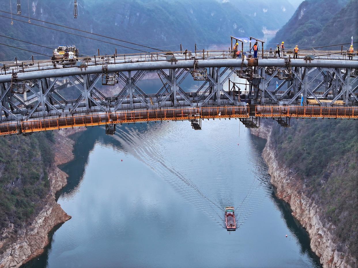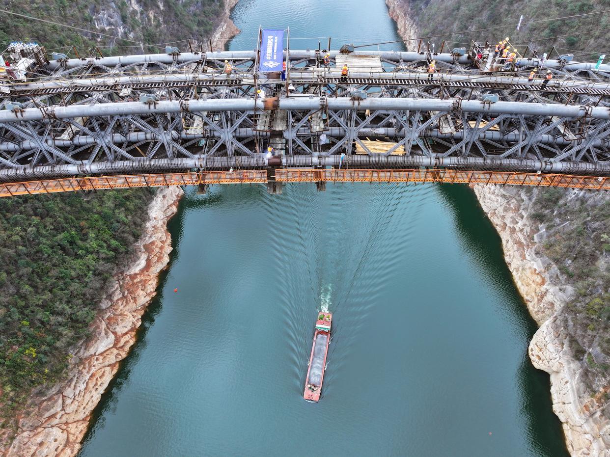 3月5日,贵州瓮马铁路南北延伸线项目控制性工程乌江特大桥顺利合龙。乌江特大桥全桥长约520米,主跨337米,桥面至江面高度约200米。