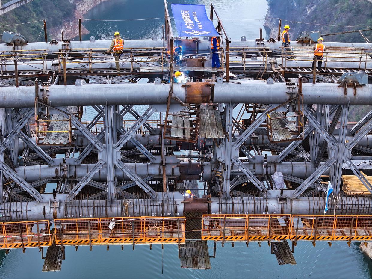 3月5日,乌江特大桥正在进行合龙。新华社记者 刘续 摄