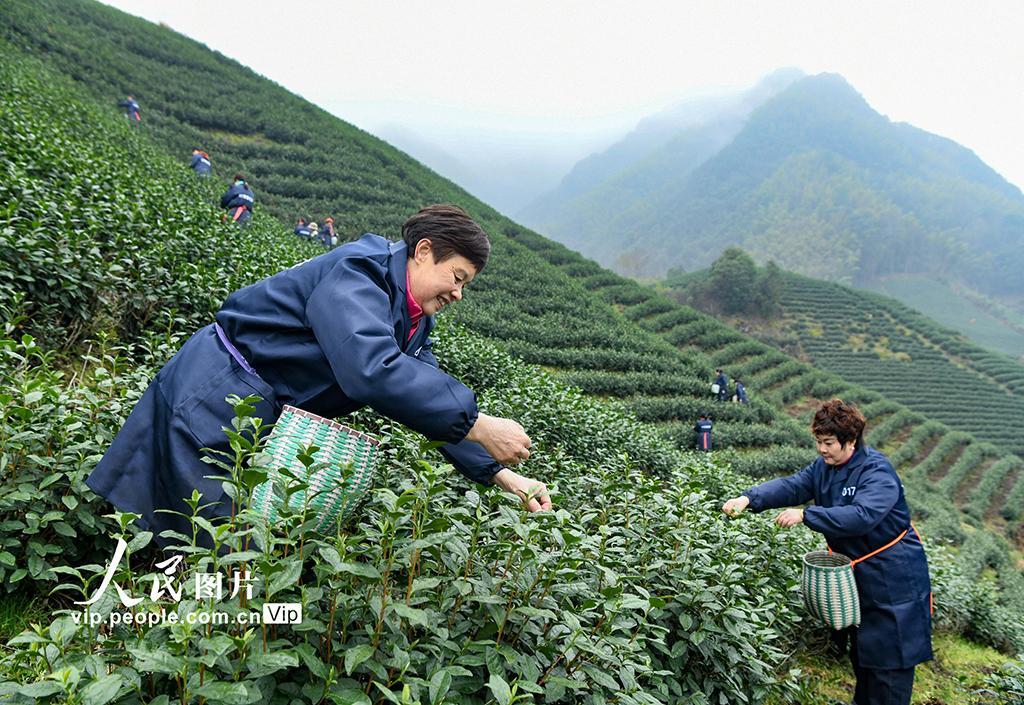 2025年3月5日,浙江省金华市的叶常香有机茶园,正式开启春茶采摘工作。时宽兵摄(人民图片网)