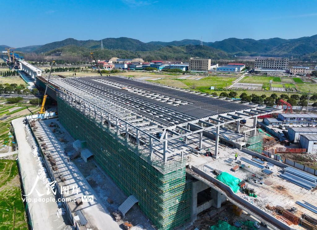 2025年3月24日,浙江省宁波市市域铁路——宁象线建设正酣。宁象线建成后将承担宁波主城区与象山城镇之间的中长距离出行及通勤功能。胡学军摄(人民图片网)