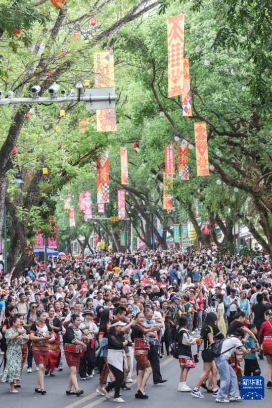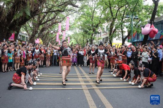 当日,2025海南黎族苗族传统节日“三月三”主会场活动在海南五指山市举行。当地举办了形式多样的民俗活动庆祝佳节,游客可以在五指山市观看“村秀”、竹竿舞等表演,还可以体验长桌宴特色美食。