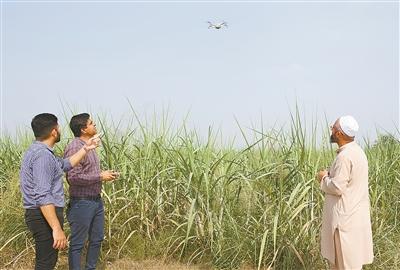 中国—巴基斯坦人工智能智慧农业实验室研发人员运用无人机定期巡检画面,通过人工智能分析,实时向农户反馈作物生长情况。