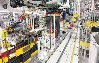 德国一家知名汽车制造商车间内,一个个明黄色的超大“行李箱”正在奔走忙碌。它们自主跟随车身,时刻与其保持同步,并将发动机、后桥举起,对接底盘,完成拼合……
