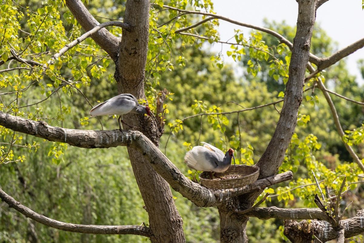 朱鹮保护区人工繁育中心里的一对朱鹮。王剑摄