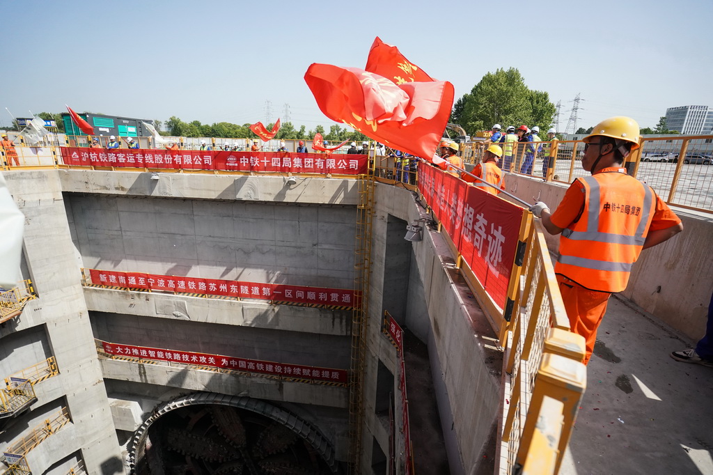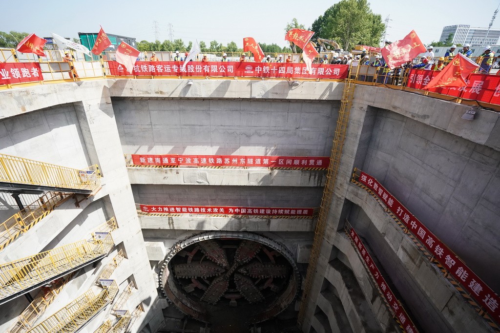 苏州东隧道是通甬高铁控制性工程之一,全长15.57公里。通甬高铁是我国“八纵八横”高铁网沿海通道的重要组成部分,建成后将进一步完善长三角地区铁路网结构,推动长三角高质量一体化发展。新华社记者 季春鹏 摄