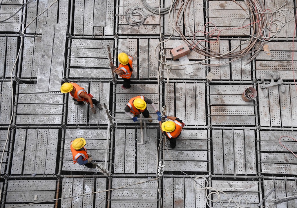 5月5日,工人在三亚河口通道工程项目现场施工。
