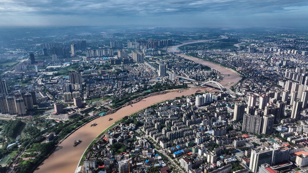 这是建设中的流经钦州市区的平陆运河航道(8月24日摄,无人机照片)。