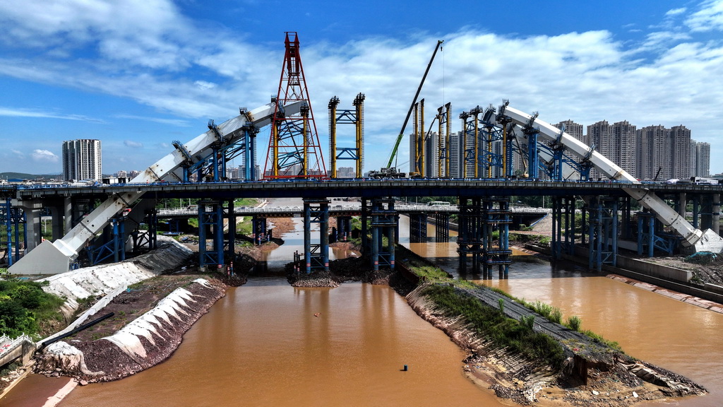 这是建设中的钦州三桥(8月24日摄,无人机照片)。
