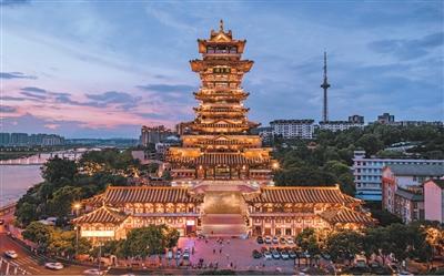 四川省绵阳市夜景灯火璀璨,吸引游客观赏打卡。