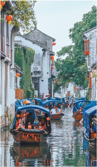 江苏省昆山市周庄古镇,独特的水乡风貌和深厚的人文底蕴吸引着八方游客。