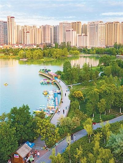 甘肃省兰州新区栖霞湖碧波轻漾、垂柳依依,成为市民游客散步休闲的新去处。