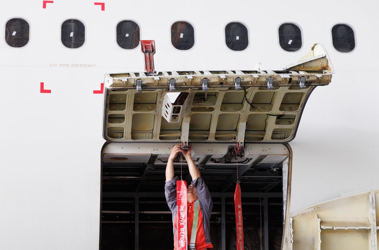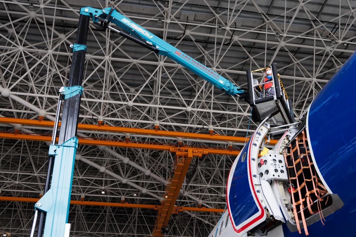 12月9日,工作人员在海南自贸港一站式飞机维修产业基地维修飞机。新华社记者 金立旺 摄