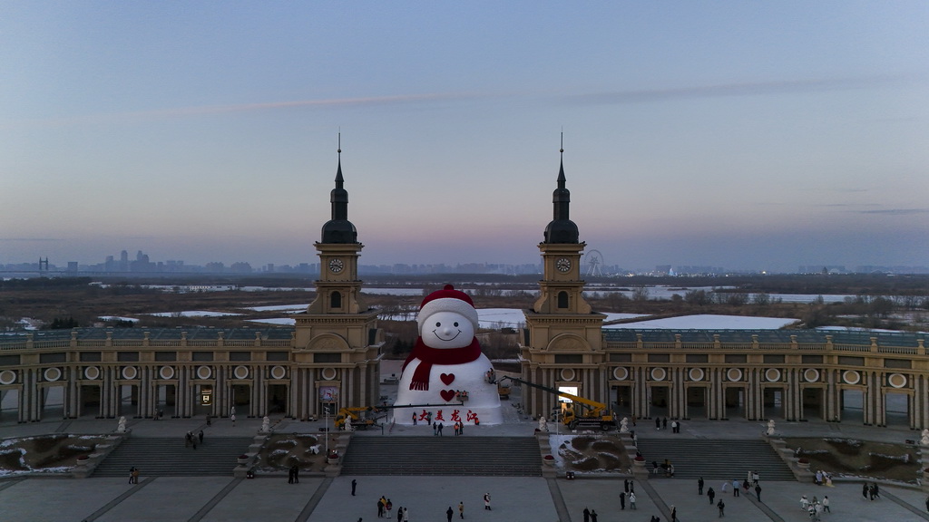 这是12月15日在哈尔滨市群力音乐公园拍摄的大雪人(无人机照片)。新华社记者 王松 摄