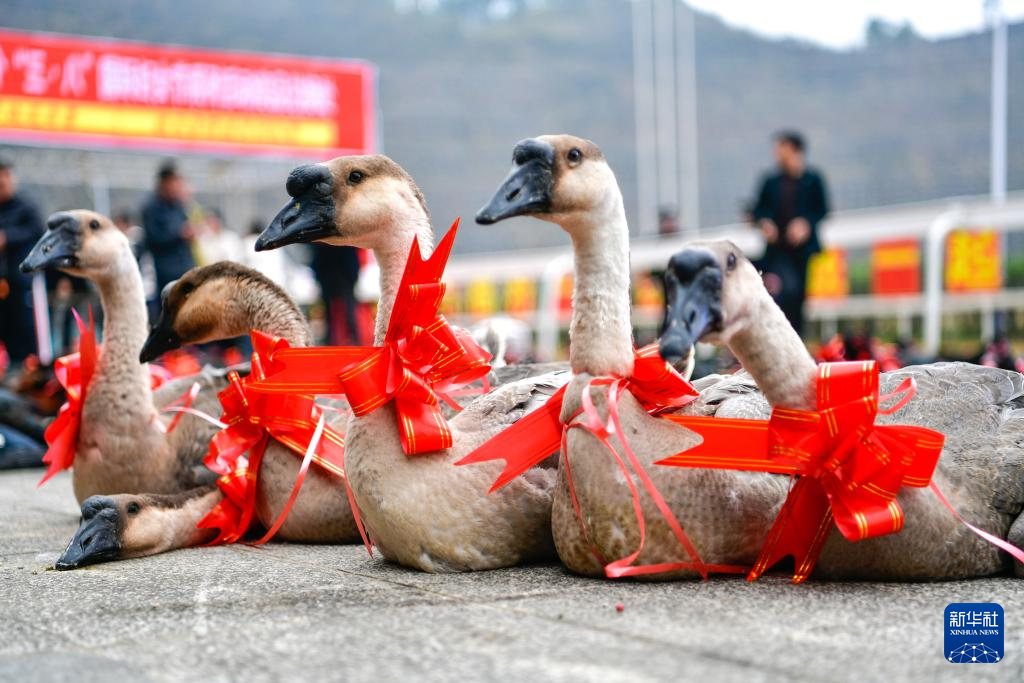 3月7日,在贵州省三都水族自治县“村马”比赛现场为活动准备的奖品——鹅。新华社记者 杨文斌 摄