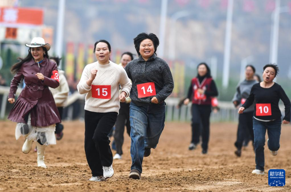 3月7日,女同胞们在2026年贵州“村马”第二届女骑手邀请赛间隙进行短跑比赛。新华社记者 杨文斌 摄