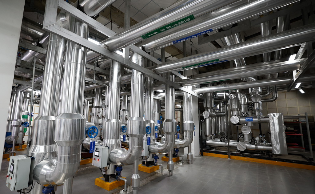 这是3月25日在博鳌近零碳示范区内博鳌亚洲论坛大酒店拍摄的改造过后的制冷机房。作为建筑绿色化改造的项目之一,更换了高能效设备设施系统的制冷机房工作将更加高效。新华社记者 杨冠宇 摄