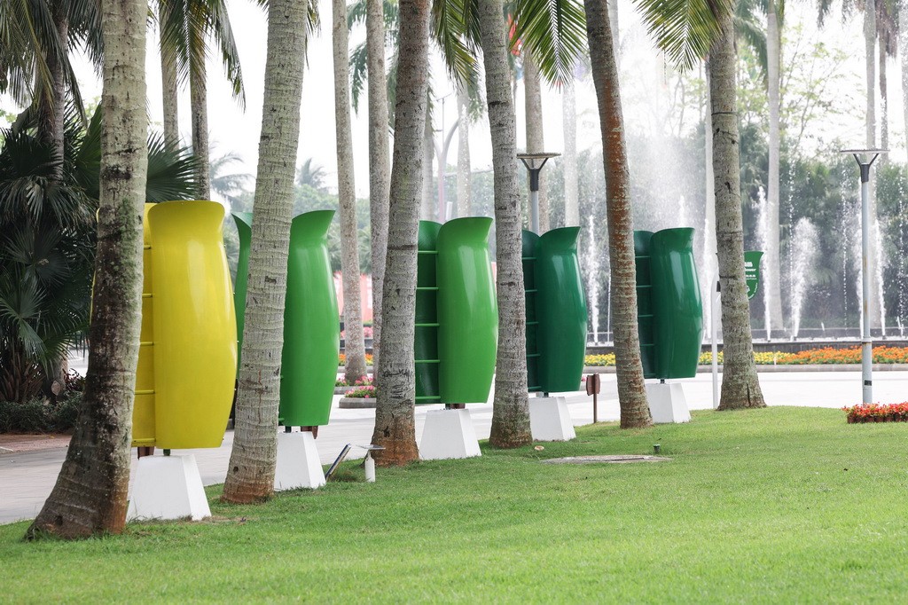 这是3月26日拍摄的博鳌近零碳示范区内的花朵风机。花朵风机用来收集风能,是岛内可再生能源利用项目之一。新华社记者 张丽芸 摄